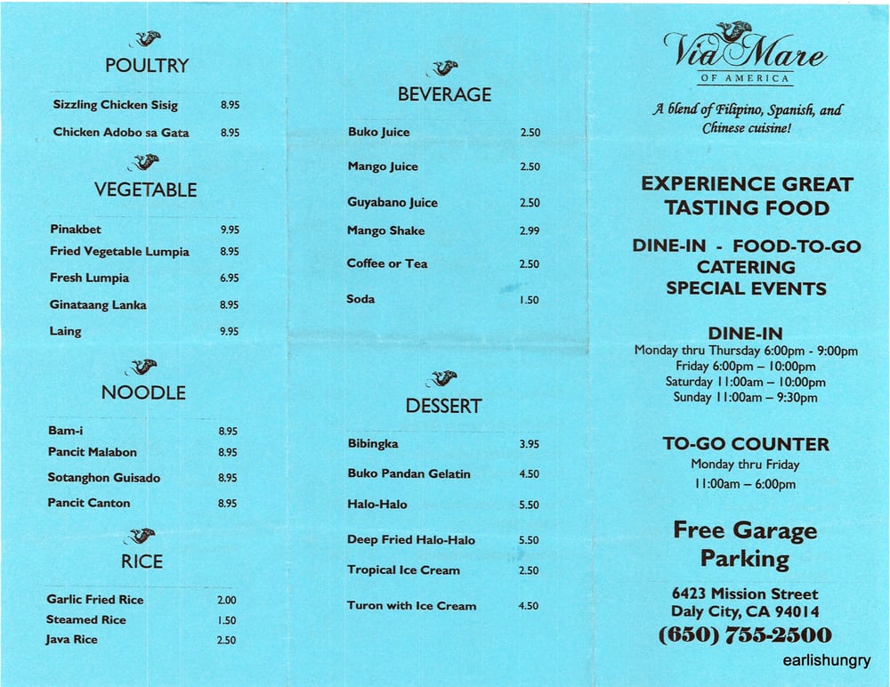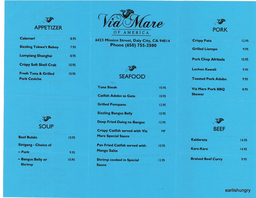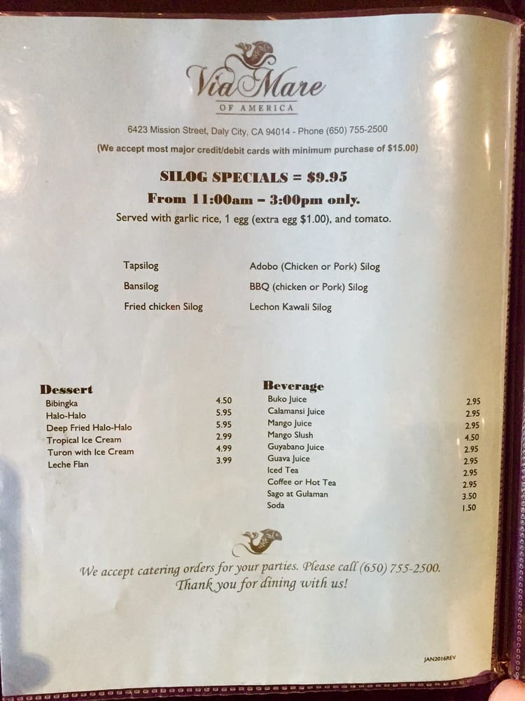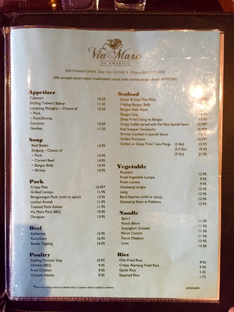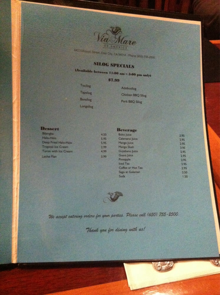 Via Mare Of America is a Filipino restaurant located in Daly City, CA, offering a variety of traditional Filipino dishes. With a casual ambiance and good for groups and kids, Via Mare provides a diverse menu with options for vegetarians as well. The restaurant also offers delivery, takeout, and catering services. Highlights of the menu include Crispy Pata, Beef Nilaga, and Lumpiang Shanghai. Customers praise the delicious food, friendly staff, and the opportunity to introduce non-Filipino friends to Filipino cuisine. The restaurant is a go-to spot for those craving home-cooked Filipino meals. With positive reviews and a loyal customer base, Via Mare Of America is a must-visit for authentic and affordable Filipino dining experience.